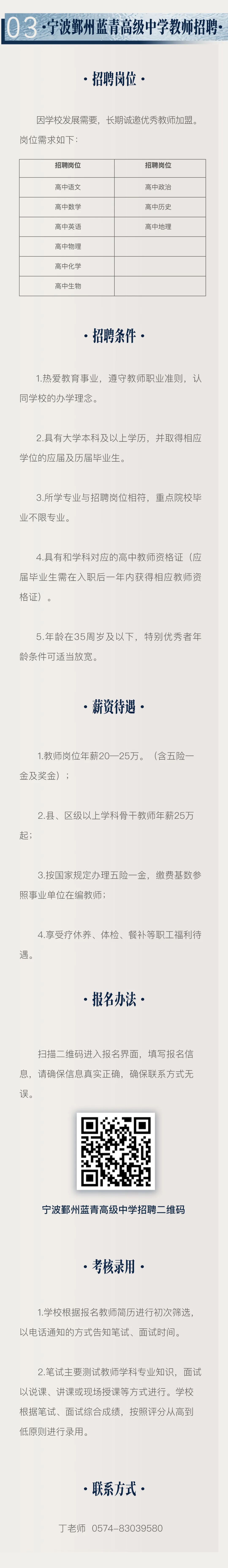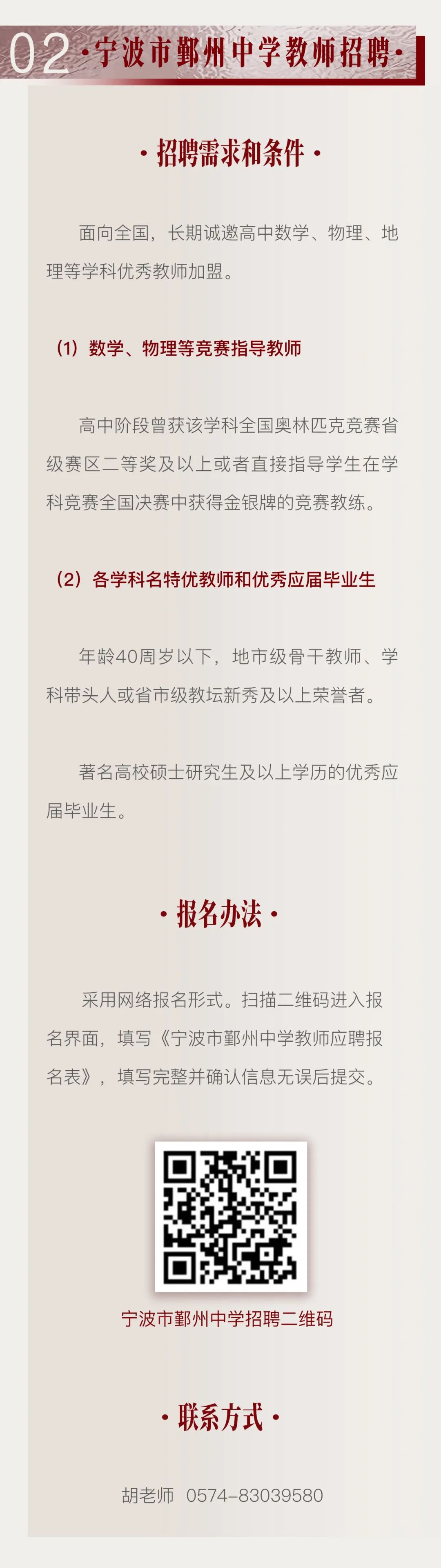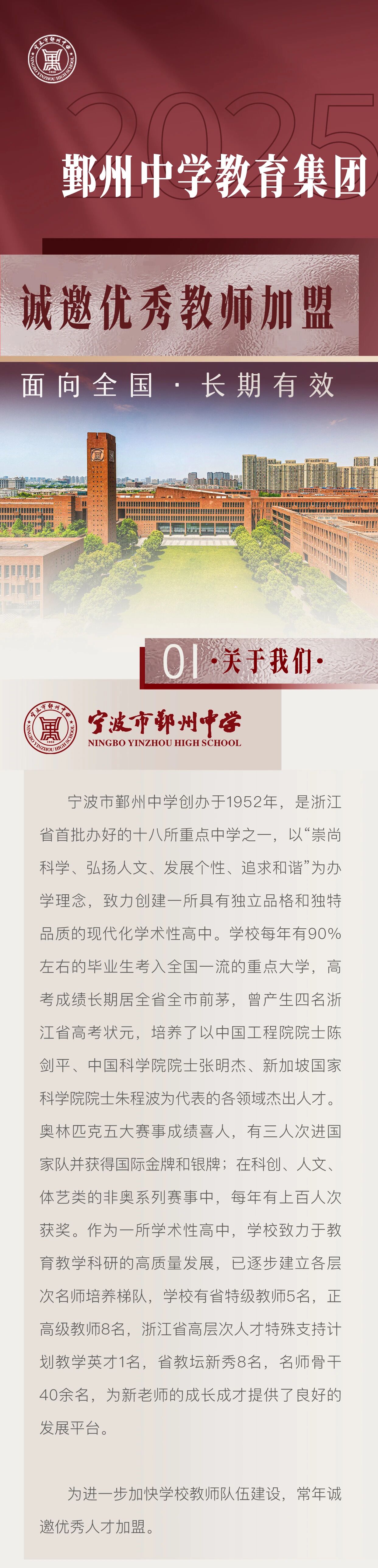 2025年浙江宁波鄞州中学教育集团招聘教师公告(若干人)
